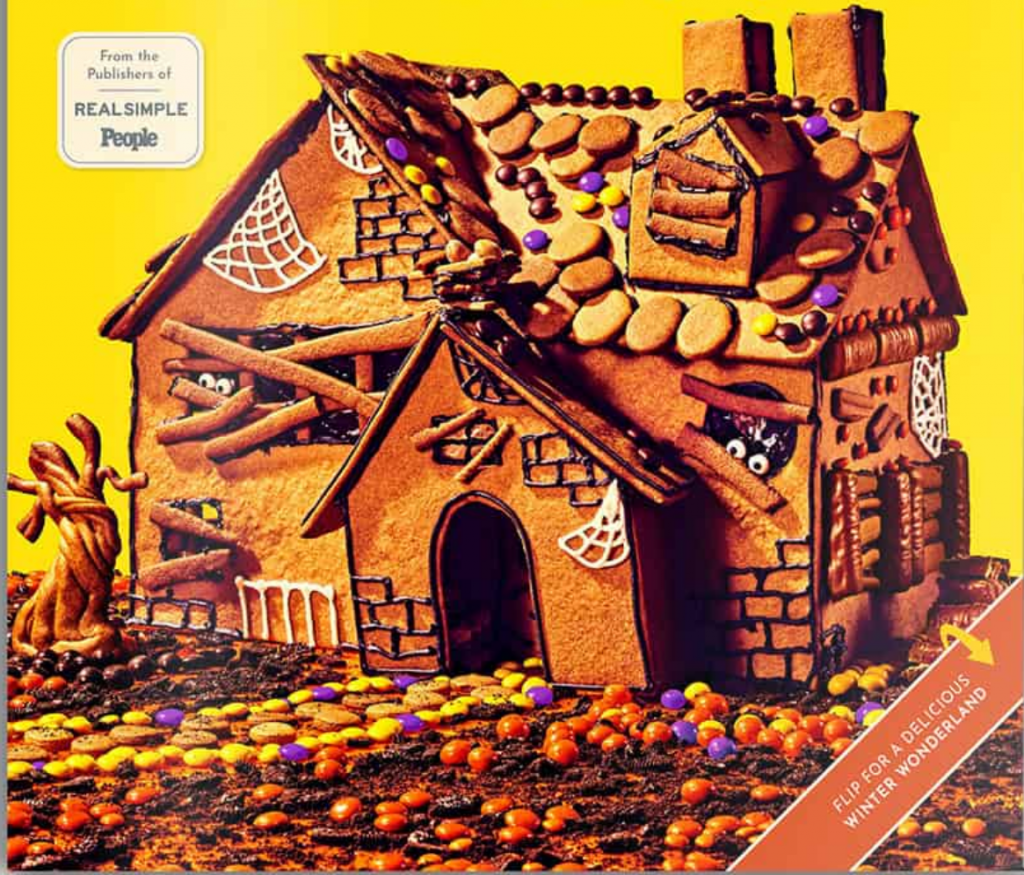 For a client’s Celebrate magazine cover, Content Solutions achieved a highly textured image of an atypical gingerbread or cookie house, suggesting the witch’s house from “Hansel and Gretel” or a similar spooky tale. The delicious elements are visible and recognizable, and the overall impression is guaranteed to make the viewer want to nibble it. At the same time, the audience of the publication is home bakers and cooks, and the component pieces of the house and foreground are presented in a way that reassures even the rankest of amateurs that they too can craft this.